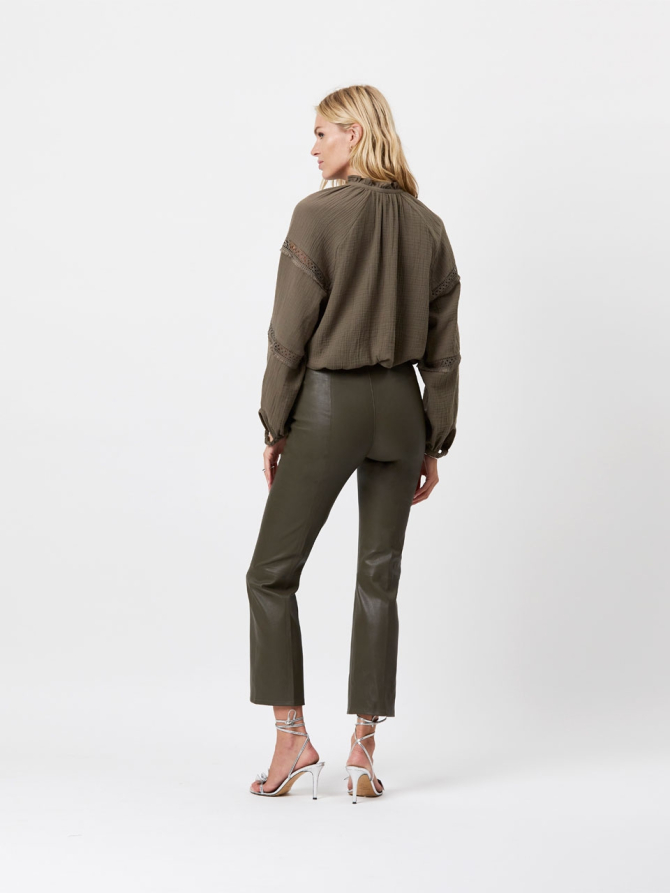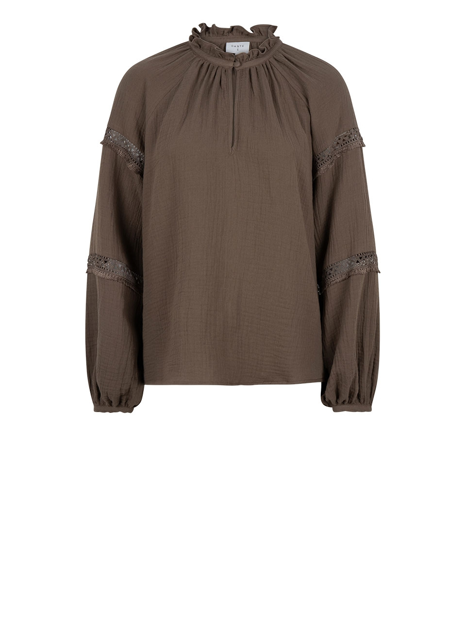 The D6Nynke bohemian top in Thyme Green captures the spirit of a classic design with enduring appeal. Crafted from a Cotton double cloth with responsible cotton, it has on oversized fit with dropped shoulders. The top features a high neckline with elegant, ruffled trimming and bohemian details on the puffed sleeves. Perfect to match with the matching D6Dorso shorts for an effortlessly chic look.