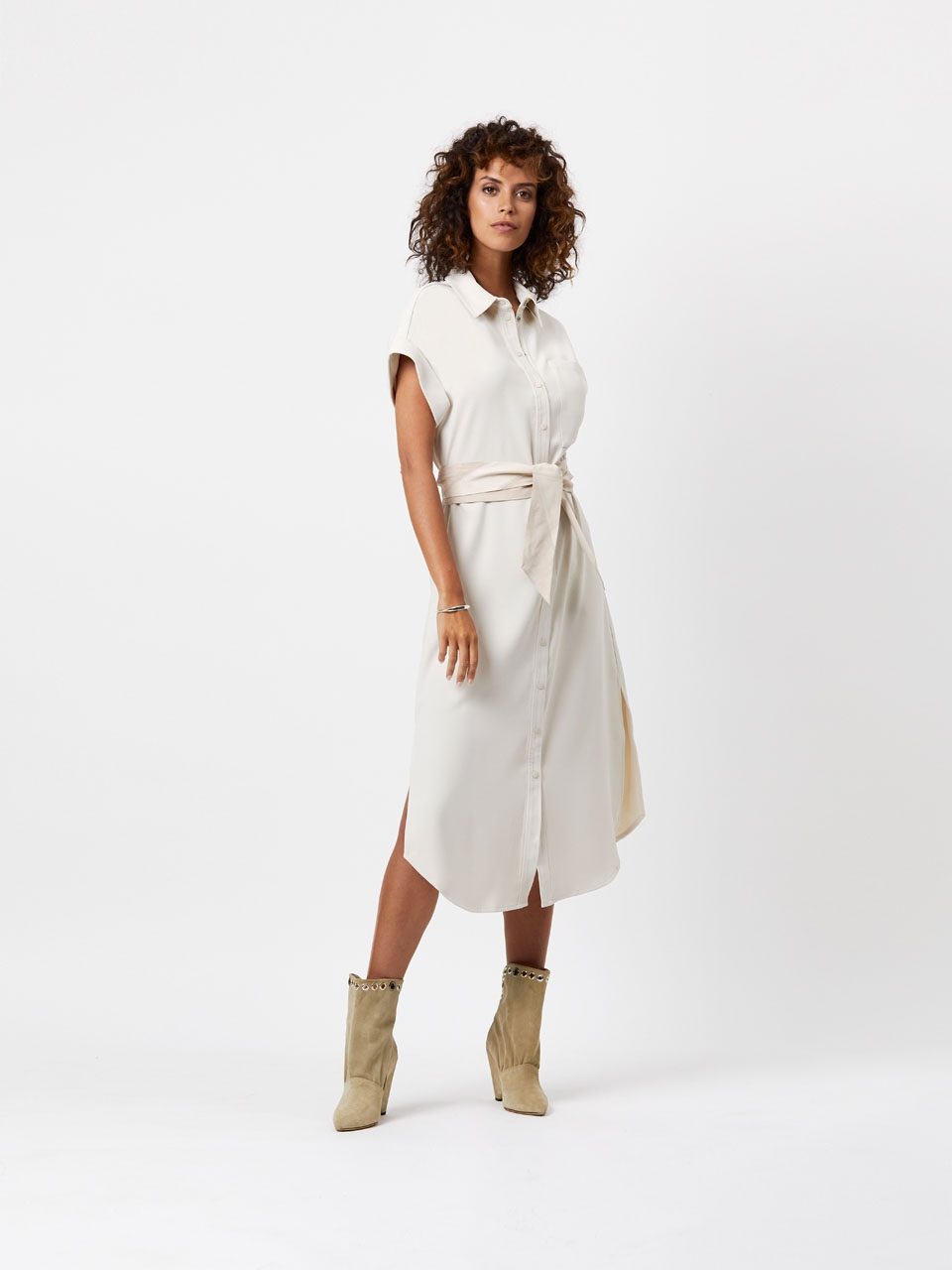 The D6Christy dress in Chalk proves to be a chic staple in understated, off-duty dressing. Cut from Satin back crepe with recycled polyester, it has a relaxed silhouette and includes a matching tie-belt. Ground yours with heels for a sophisticated look or opt for sandals for a nonchalant summer look.