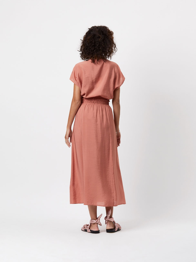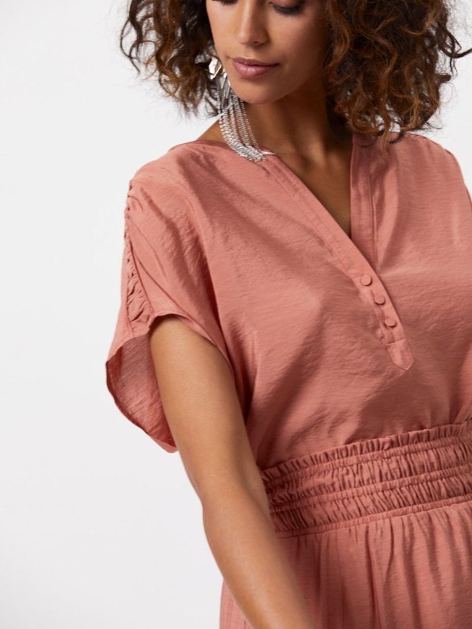 Dante6 lays the foundation of your daily edit with the D6Rover top in Coral Blush. In a relaxed fit, it’s cut from a lightweight acetate/modal blend. The top is distinguished by its short sleeves and round neckline with slit. Pair it with the matching maxiskirt and eye-catching belt, for a look on-the-go.