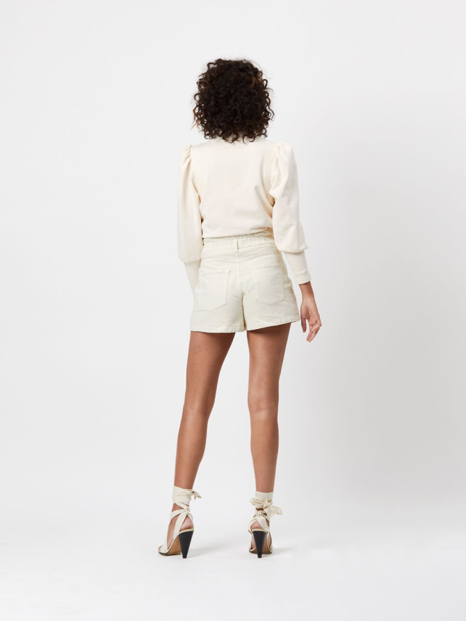 The D6Munda fancy sweater in Butter Cream is a true timeless sweater for seasons to come. Crafted from a garment dyed heavy jersey and cotton poplin, this style features a round neckline with slit. Cut to a regular fit, it’s defined with slightly puffed sleeves that fall into a long cuff. Style yours with a denim short for a sophisticated look on-the-go.