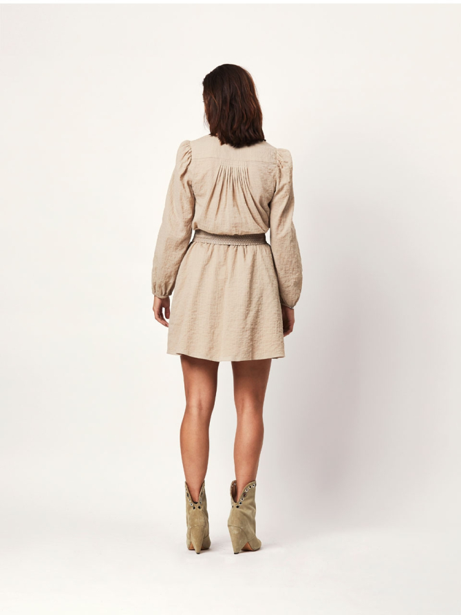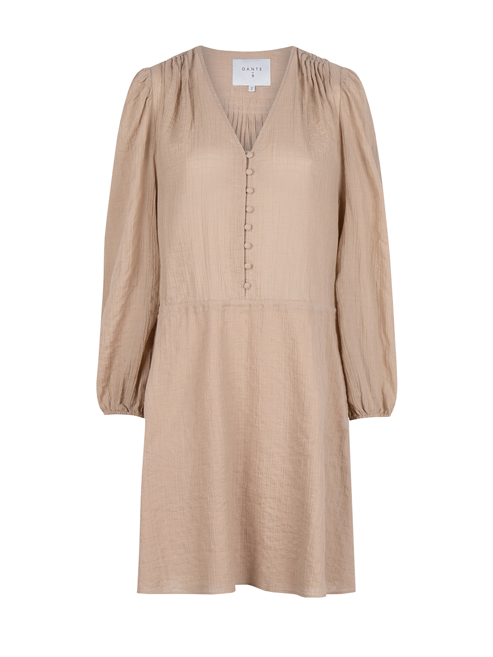 Relaxed weekends call for casual designs such as the D6Vichy dress in Cobblestone. The loose-fitting silhouette is made of cotton stretch Dobby with 97% responsible cotton and a lining made of Ecovero viscose voile. The dress features a V-neckline, slightly puffed sleeves and stitching at the waist to create a feminine fit. Wear it with comfy sandals or sneakers for an easy yet elegant look.