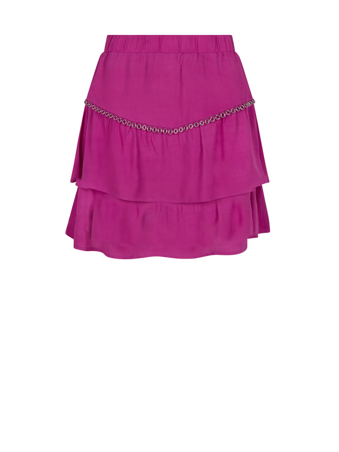 Add a touch of whimsy to your look with the D6Chia skirt in Pink Berry with eyelet detailing. Made from 100% Ecovero Viscose, it is the perfect responsible choice for your summer edit. The skirt features an elastic waistband, which makes it utterly comfortable to wear. The 2-layer ruffles at the bottom of the skirt gently outline the legs and create a playful texture. Pair the skirt with the matching top for an elegant look or wear it with a sweater for a chilly day out.