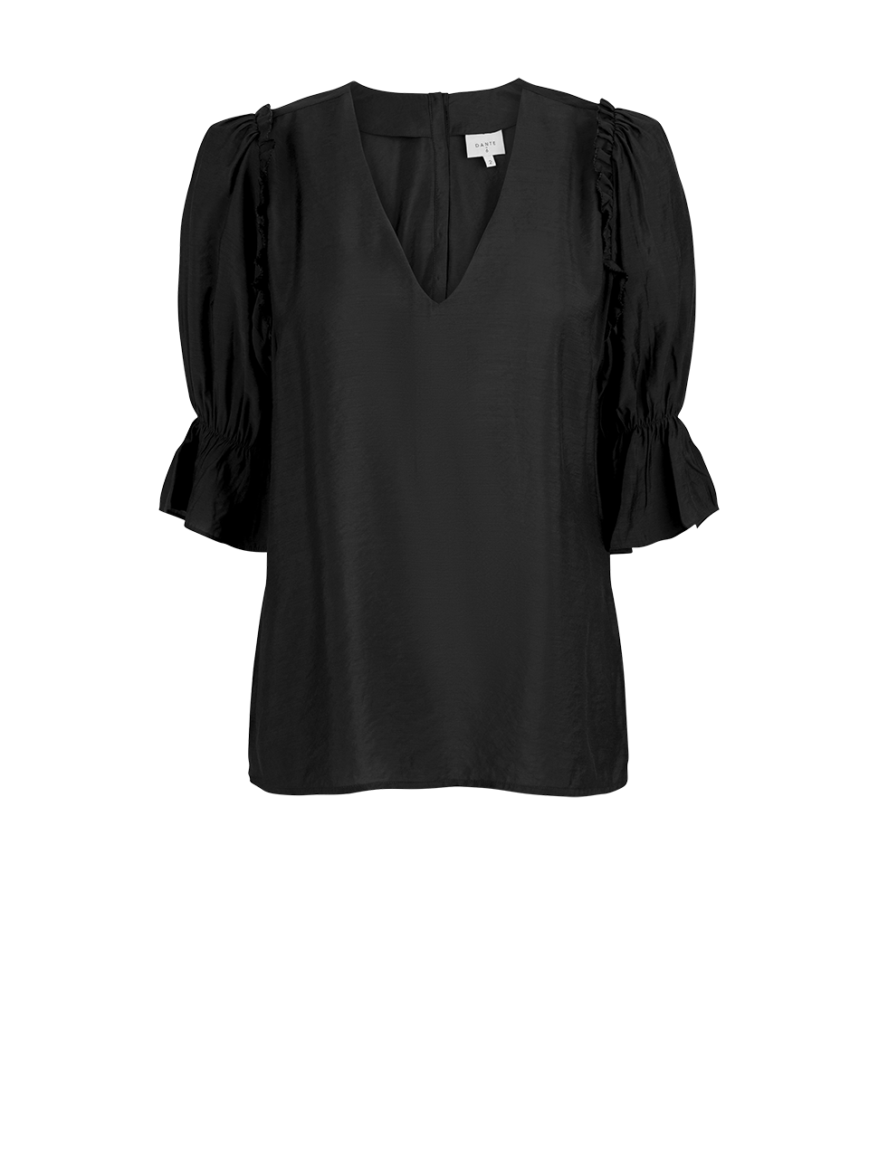 Lean into Dante6’s modern romanticism with the D6Sole top in Raven. Crafted from a refined viscose blend, the top has a deep V-neckline and is framed with ruching on the stitching. It is defined with exaggerated puffed sleeves that are gathered above the elbow. Pair it with a skirt and be ready for garden parties all summer long.