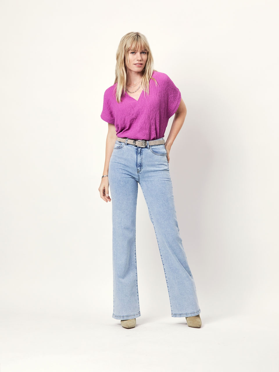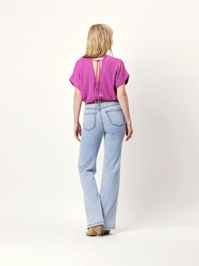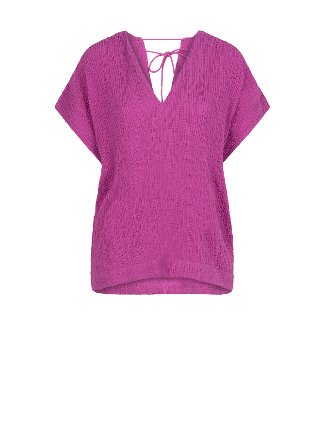 The D6Muze top in Pink Berry perfectly embodies effortless elegance. Crafted from Crinkle Dobby made with certified recycled polyester and viscose, it is the perfect responsible edit in your summer wardrobe. The highlight of this style is the open back with self-tie detail at the neck and a deep V-neckline. Match the style-staple top with any skirt or pants and comfortable sandals for a sunny day out.
