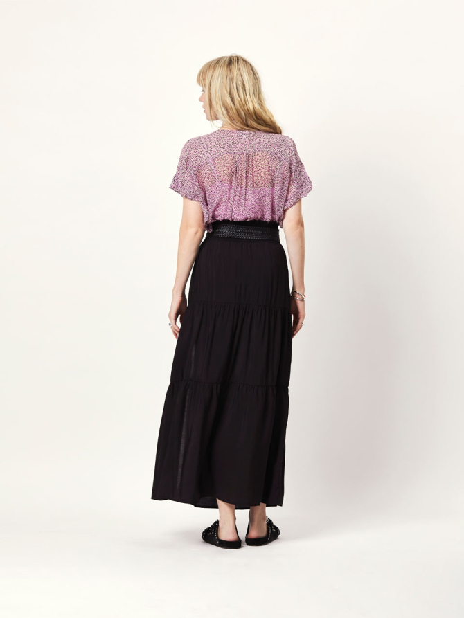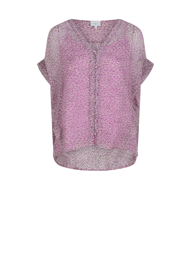 The printed D6Elania top is perfect for the warmer days. The top’s outer shell is made of crinkled viscose chiffon and comes with a lining top made of viscose voile. The oversized style with wide cap sleeves, deep V-neckline and visible button closure is easy to combine. Pair it with a skirt or tuck it into a high waisted pants for an effortless casual look.