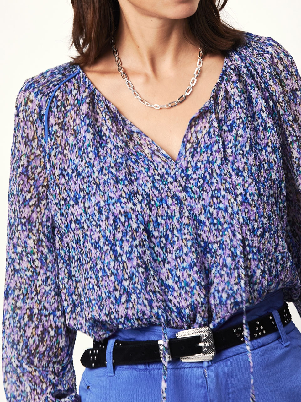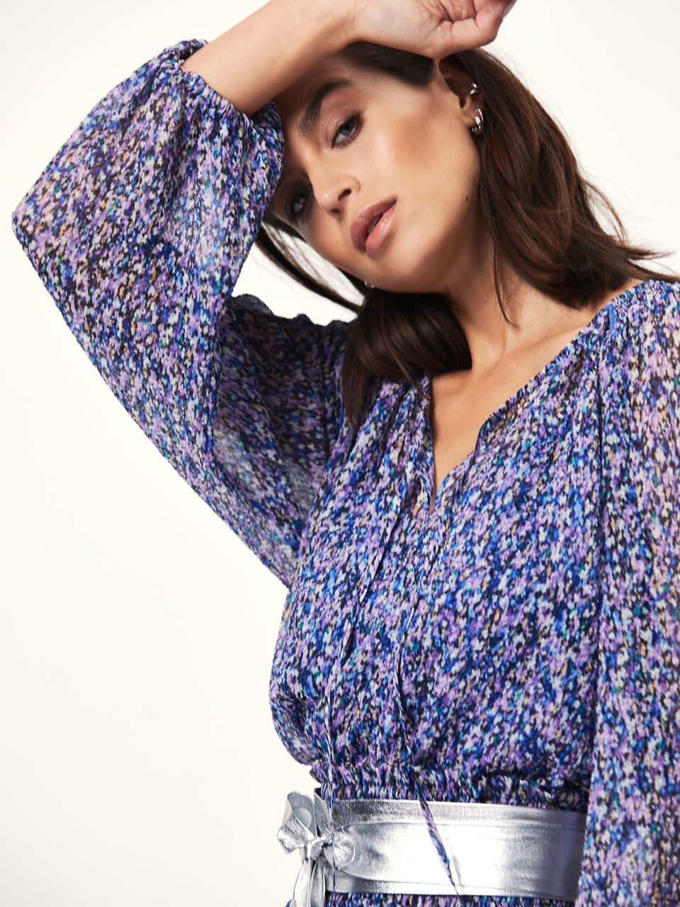 Embrace Dante6’s bohemian mindset with the feminine D6Mannet print top. Crafted with certified printed crinkle recycled polyester, it is the perfect responsible choice for your summer edit. The blouse has a deep V-neckline that can be closed using small cords. Combine this blouse with the matching skirt for an easy-to-go yet sophisticated look.
