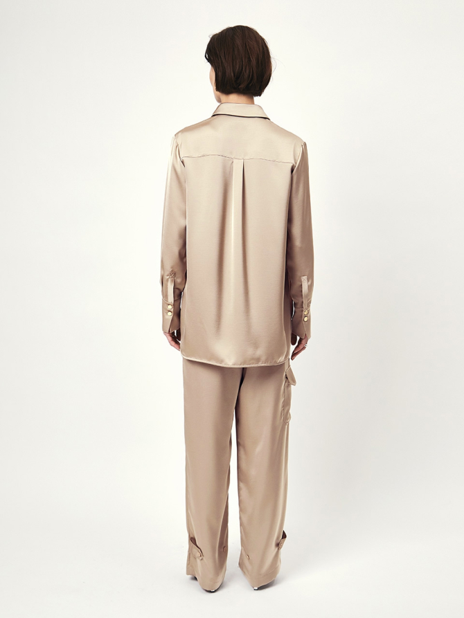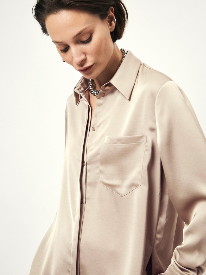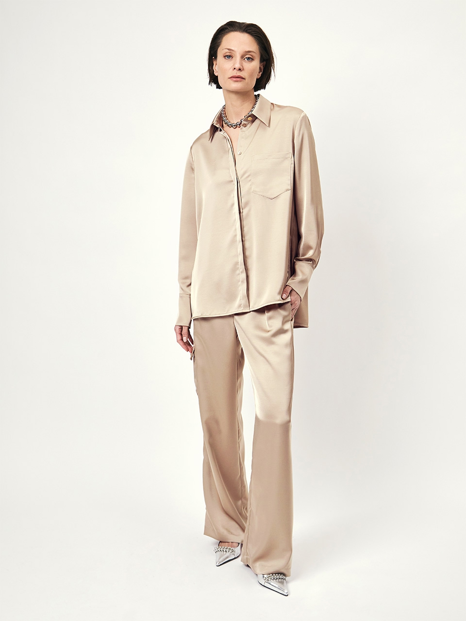 The D6Louda satin long shirt in Sand embodies a chic and sophisticated style. This blouse is crafted from luxurious satin and features a pocket on the chest, creating a visually captivating and elegant look. Combine it with the matching D6Harlow satin wide pants in the same colour for a total Dante6 look.